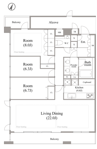 | Floor size | 1143.88.sqft(106.27㎡) |