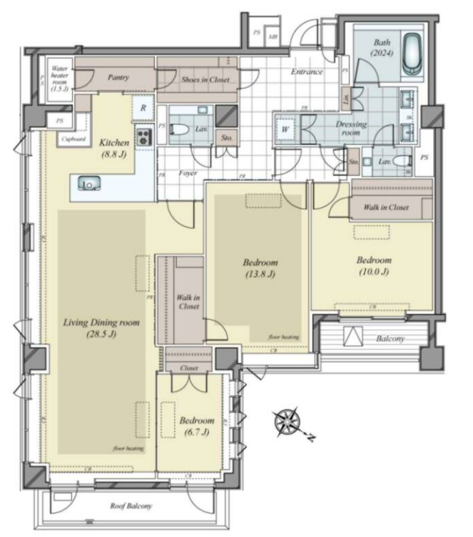 Very attractive low-rise condominium with 3 floors or less. The low-rise condominium is very quiet because the number of tenants is small. The living environment is highly prioritized in this area and the neighborhood is very quiet and relaxing. You could not even believe you are in Tokyo.